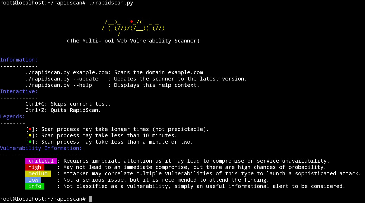 apt install git python git clone https://github.com/skavngr/rapidscan cd rapidscan ./rapidscan