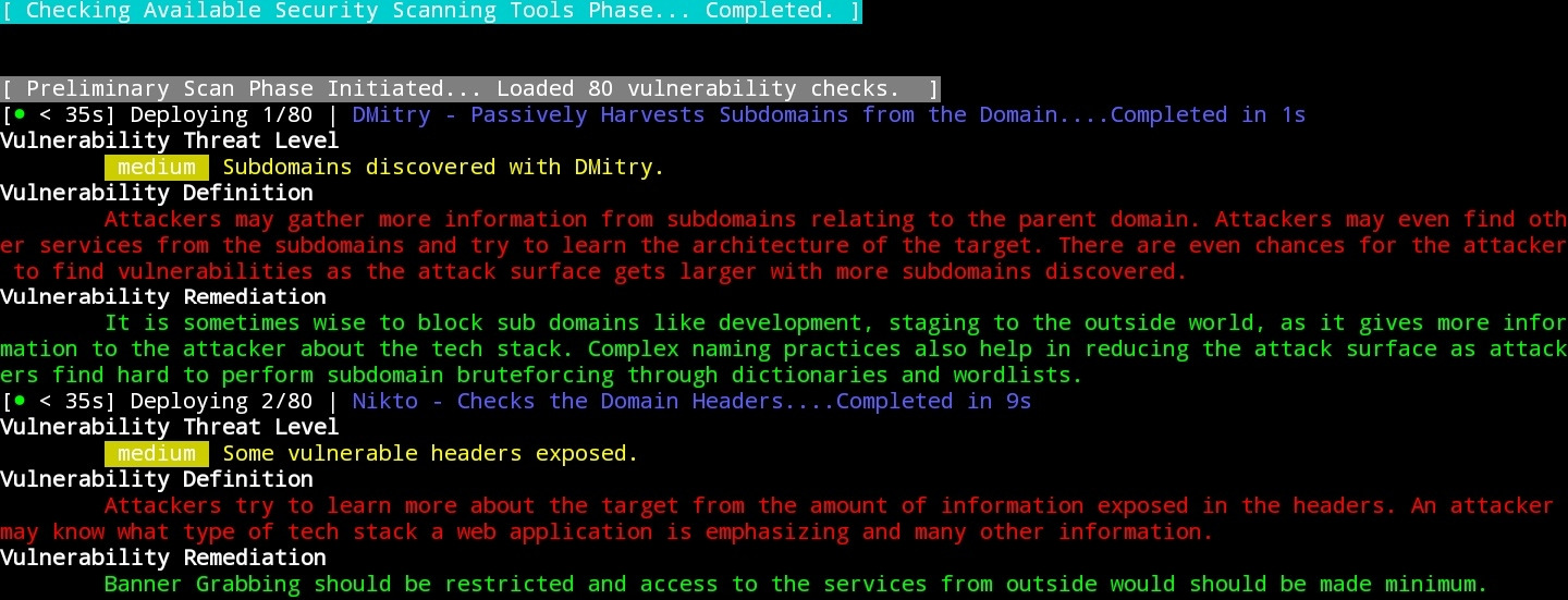 Сперва утилита проверит какие инструменты установлены, после, начнёт выявление уязвимостей