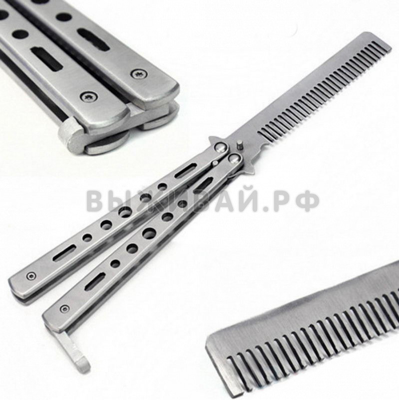 Расчёска бабочка это необычного вида нож, где вместо лезвия у него расческа . Отлично подойдет для тех, кто решил заняться флиппингом (необычные трюки с бабочкой) . . .