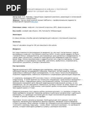 Расчет препаратов для введения в инфузии с постоянной . . .