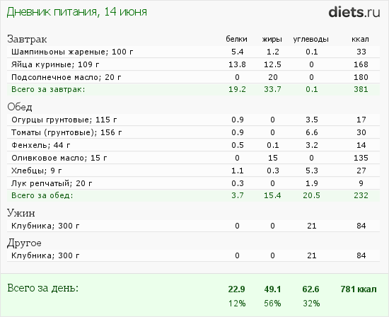 Расчет кбжу в день