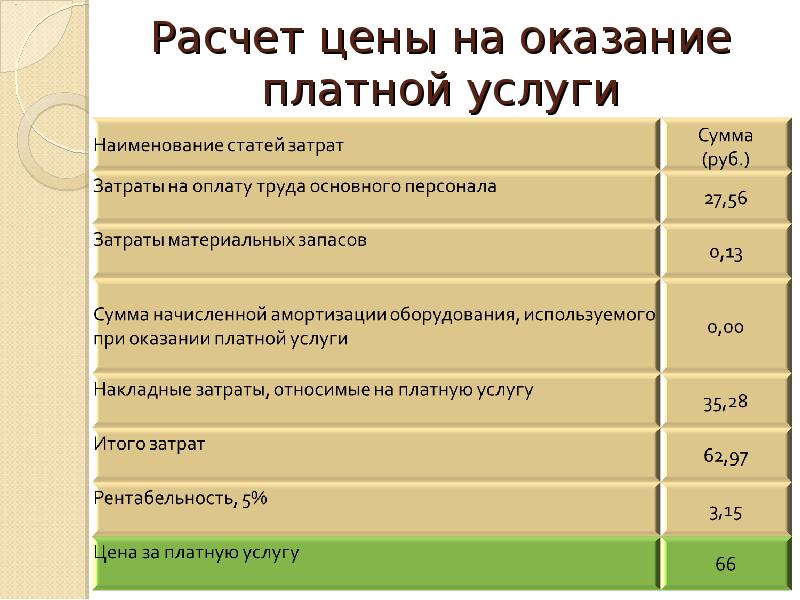 Расчет платных услуг пример 58 фото