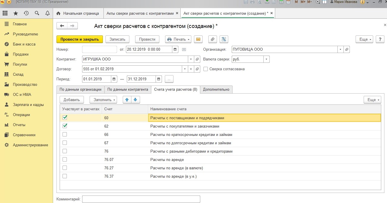 Расчет с поставщиками в 1с 8.3