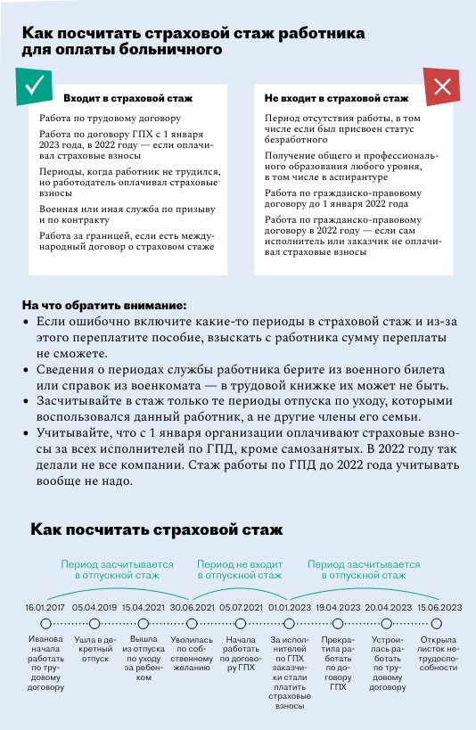Расчета страхового стажа работника