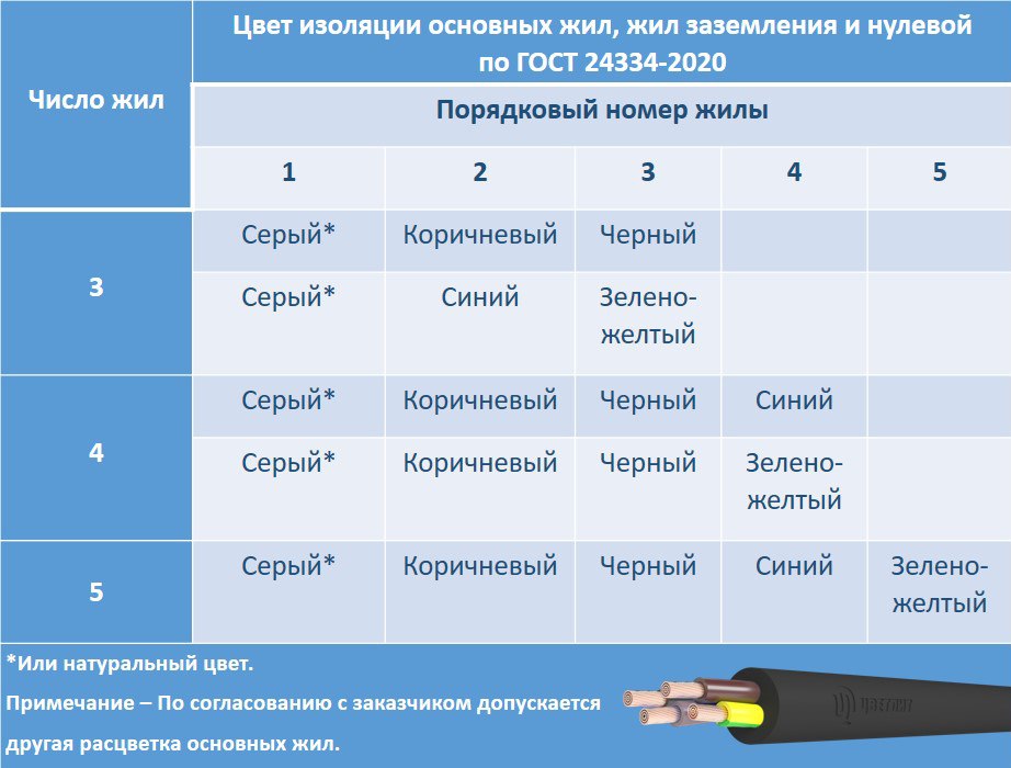 Расцветка жил кабелей