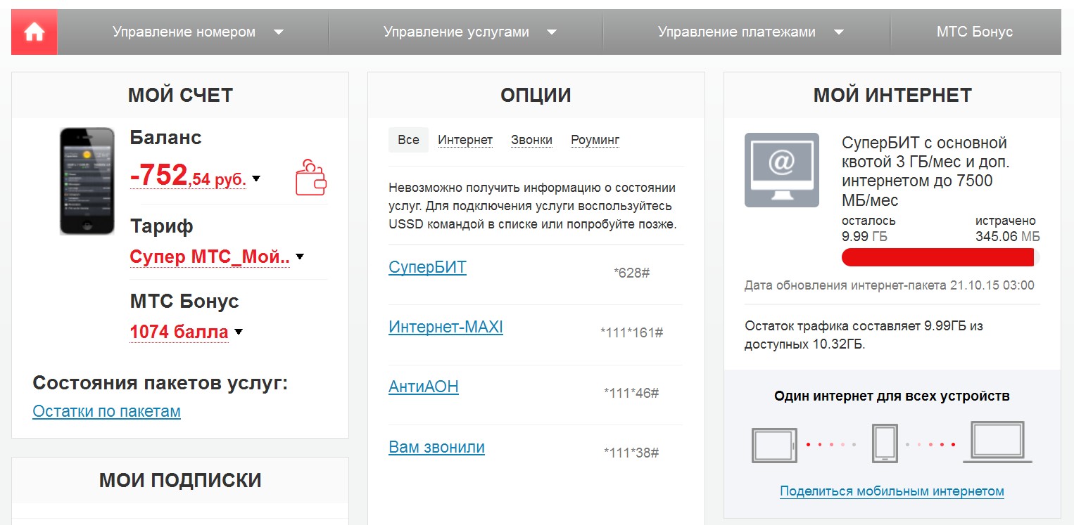 Расход интернет трафика мтс