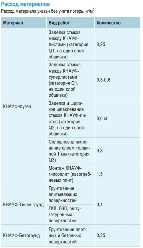 Расход шпаклевки knauf