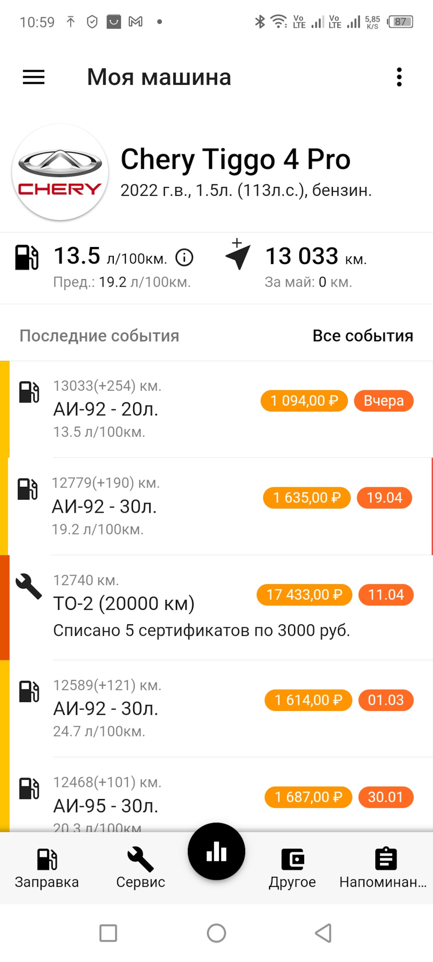 Расход топлива черри 7 про макс