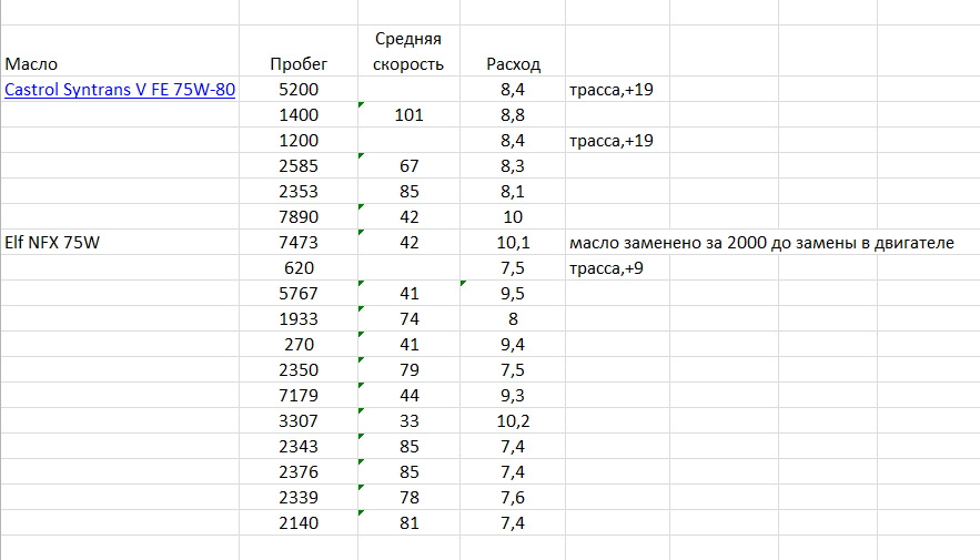 Расход трансмиссионного масла
