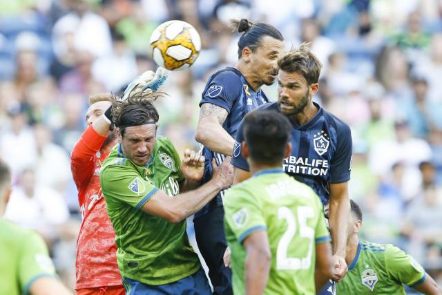 Форвард «Лос-Анджелес Гэлакси» Златан Ибрагимович забил гол и сделал результативный пас в матче МЛС с «Сиэтл Саундерс» (3:4).