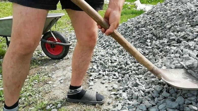 Раскидать щебень вручную