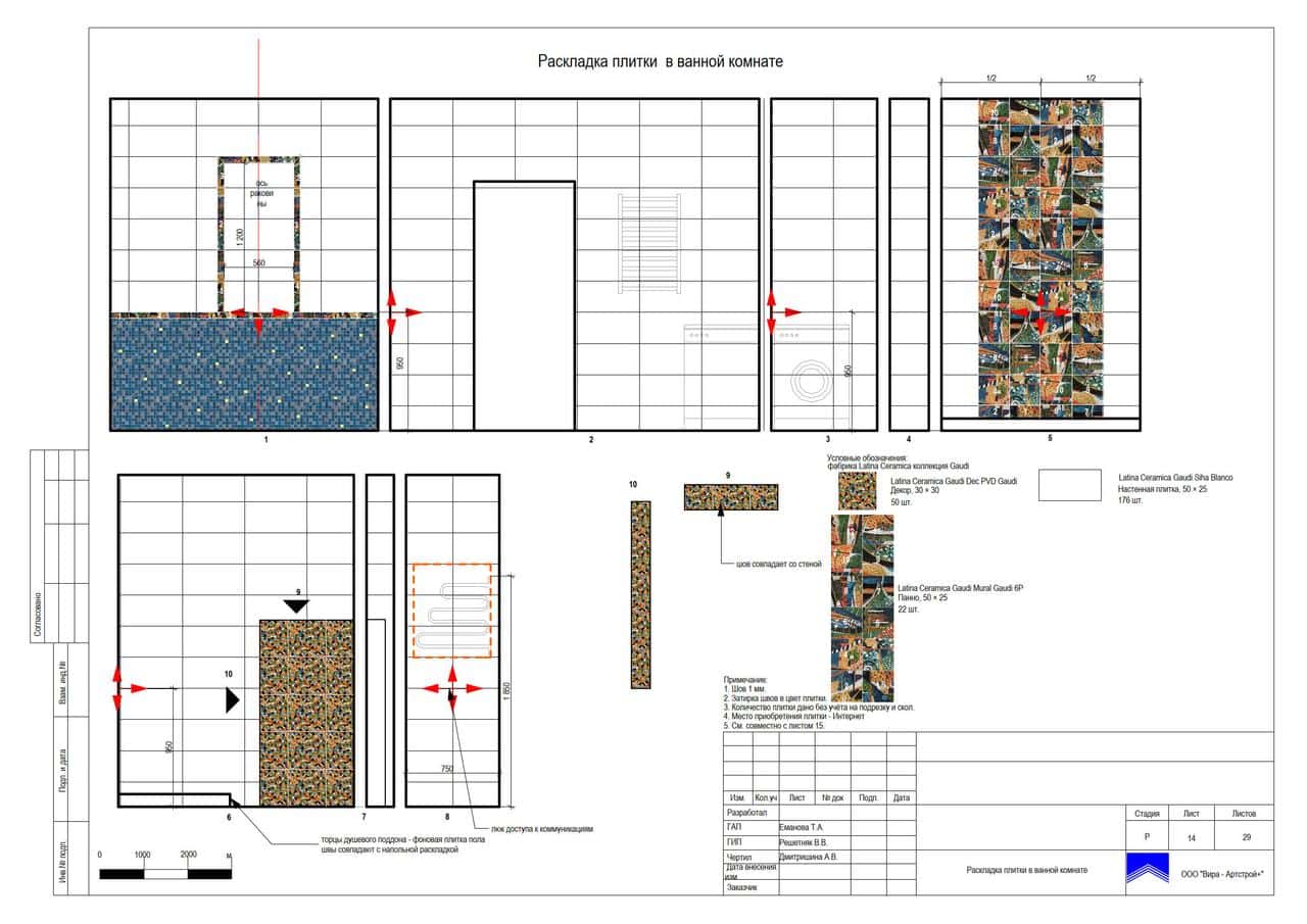 Раскладка плитки ванной комнаты в разных вариантах, фото