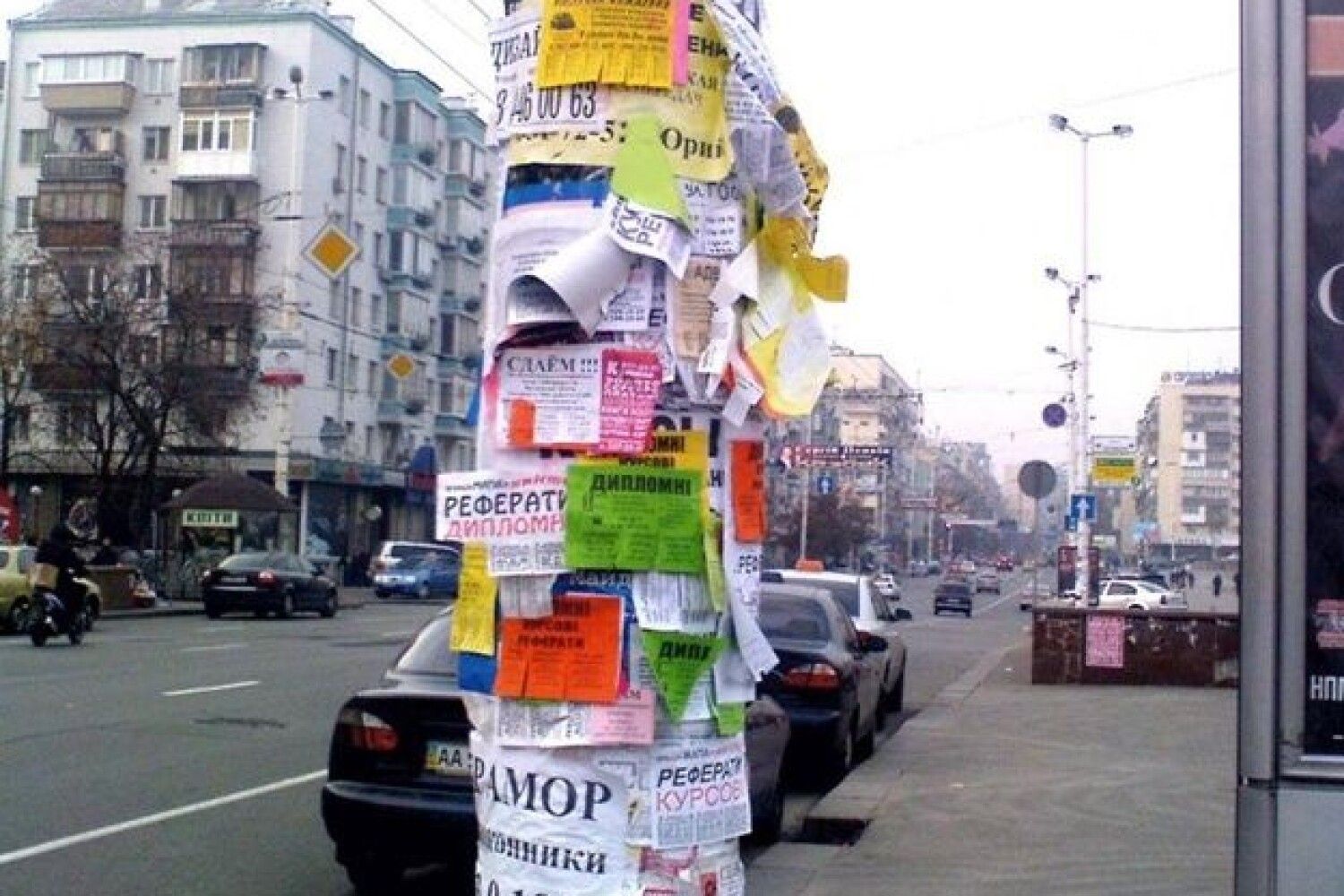 Расклеен на стенах