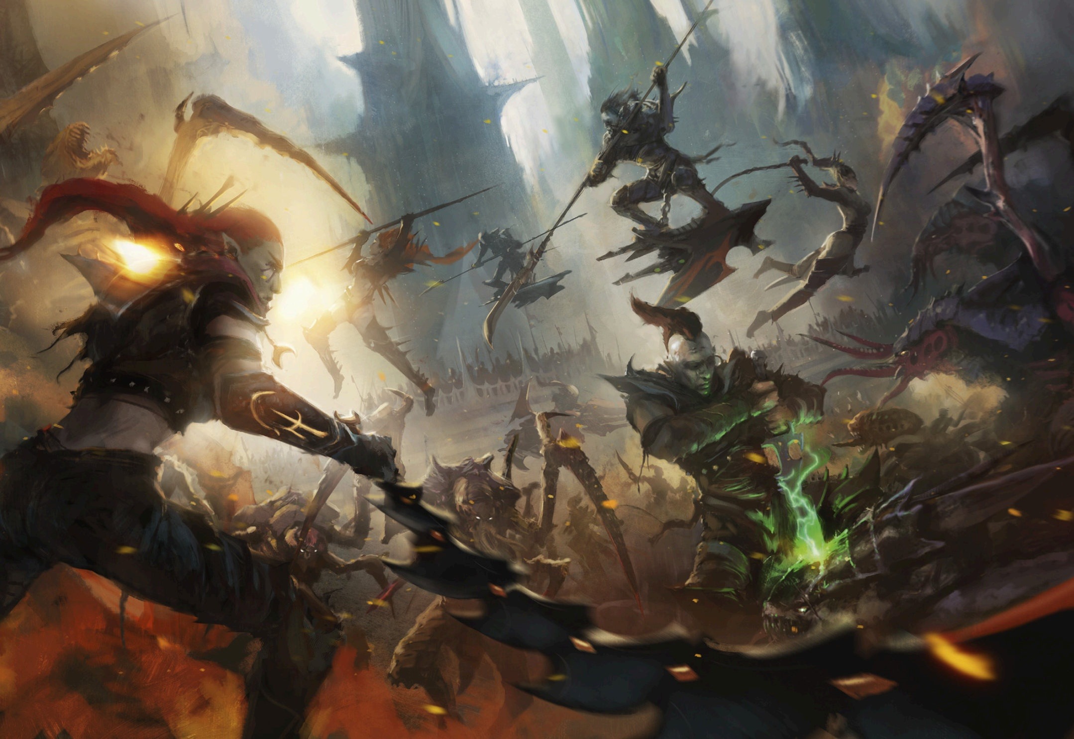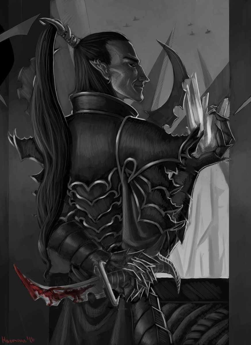 Толпа одобрительно заревела, но, как часто бывает в темноэльдарском обществе, ошибка Комморрской Белладонны тоже была притворством. Леди Гесперакс умышленно оставила одну руку открытой и позволила клинку соперницы пройтись по коже, чтобы ещё больше запутать зрителей. Лелит вовсе не спешила заканчивать дуэль, дабы не разочаровать своего бессменного покровителя — Асдрубаэля Векта. Верховный владыка наблюдал с пирамидальной крепости, парящей высоко в небе, уделяя происходящему внизу лишь толику своего внимания.
