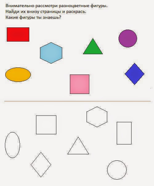 Раскрась фигуры с одинаковым цветом