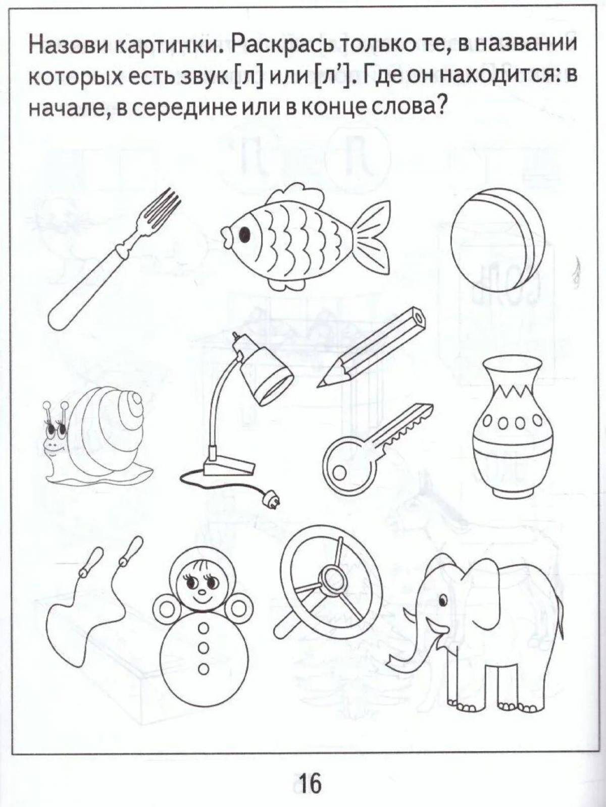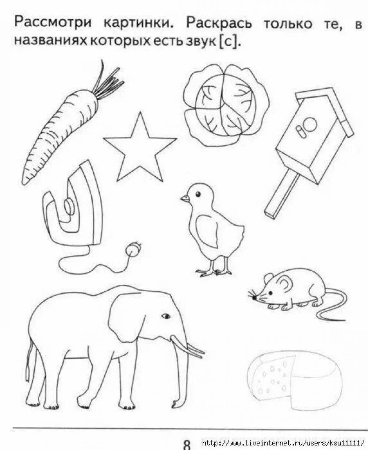 Раскрась картинки в которых есть звук и