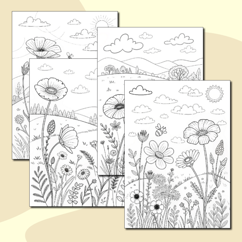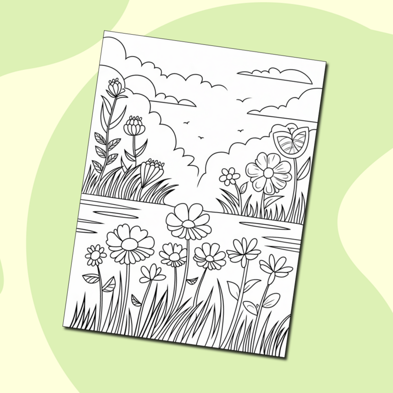 Раскраска цветочная поляна