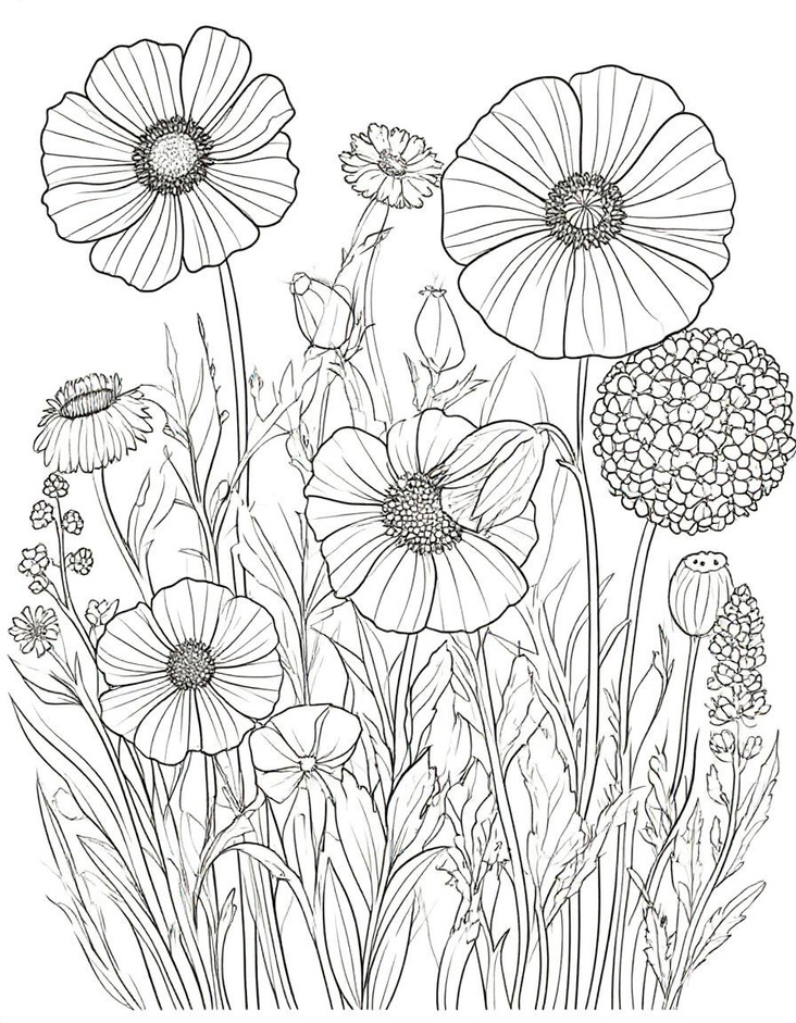 Раскраска цветочная поляна 145 фото
