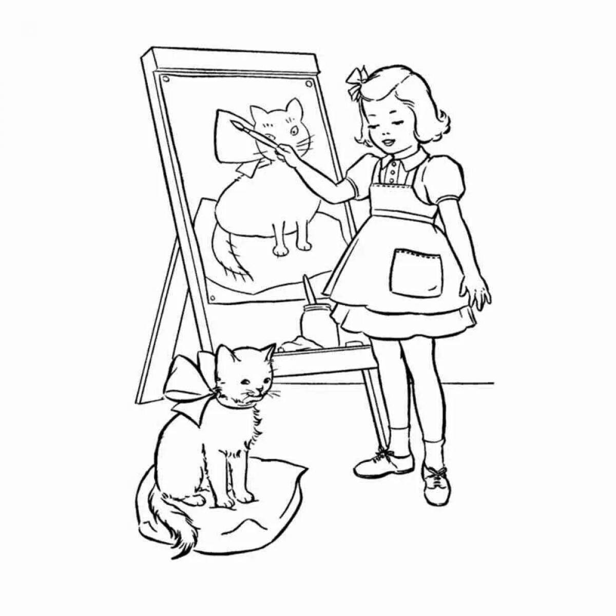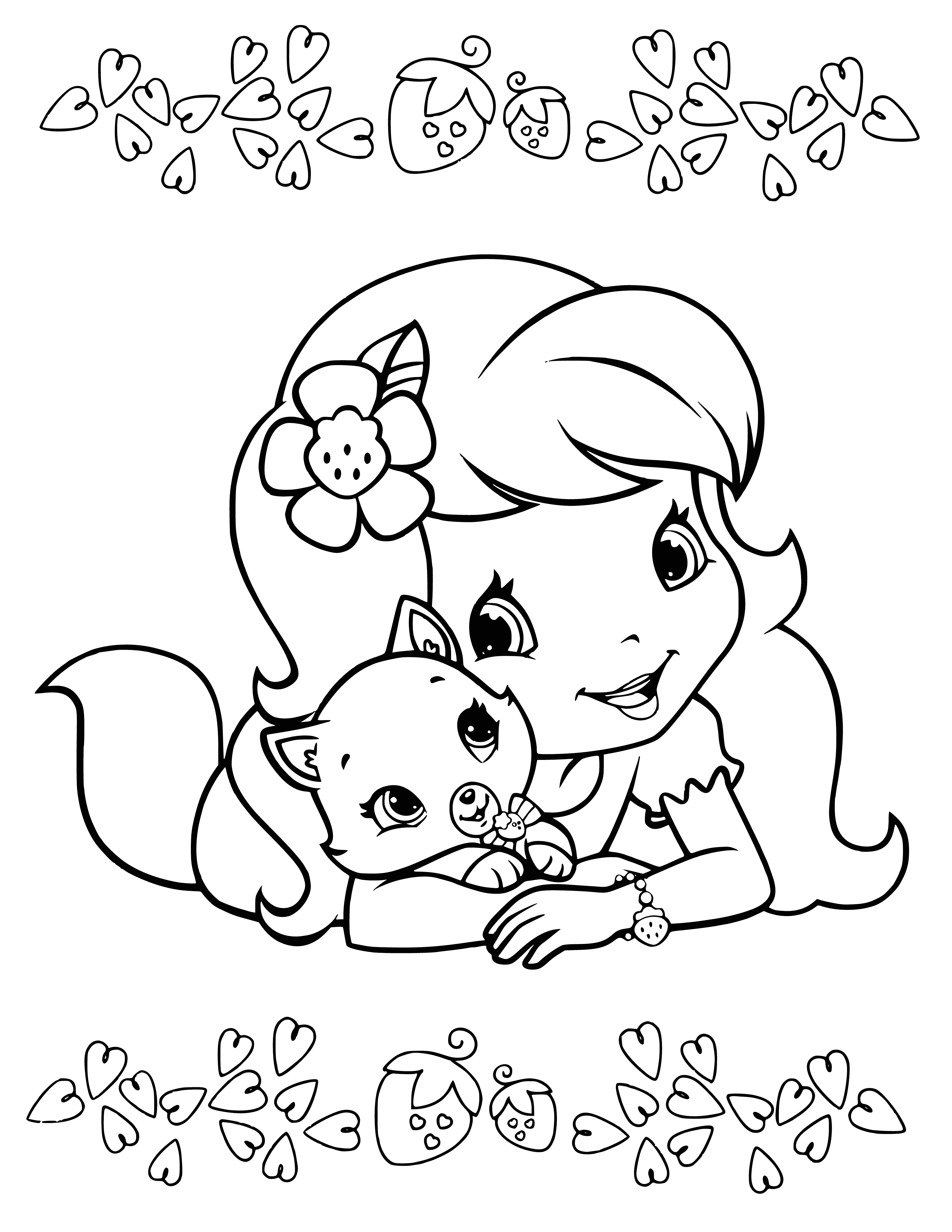 Раскраска девочка с кошкой 89 фото