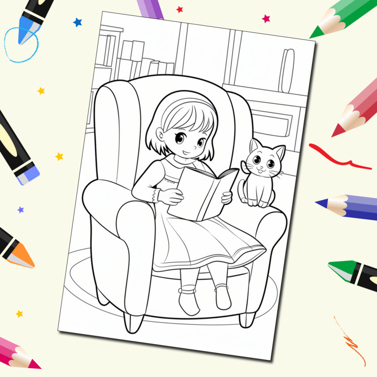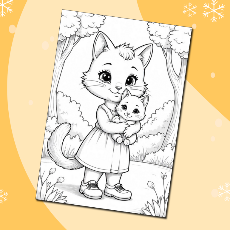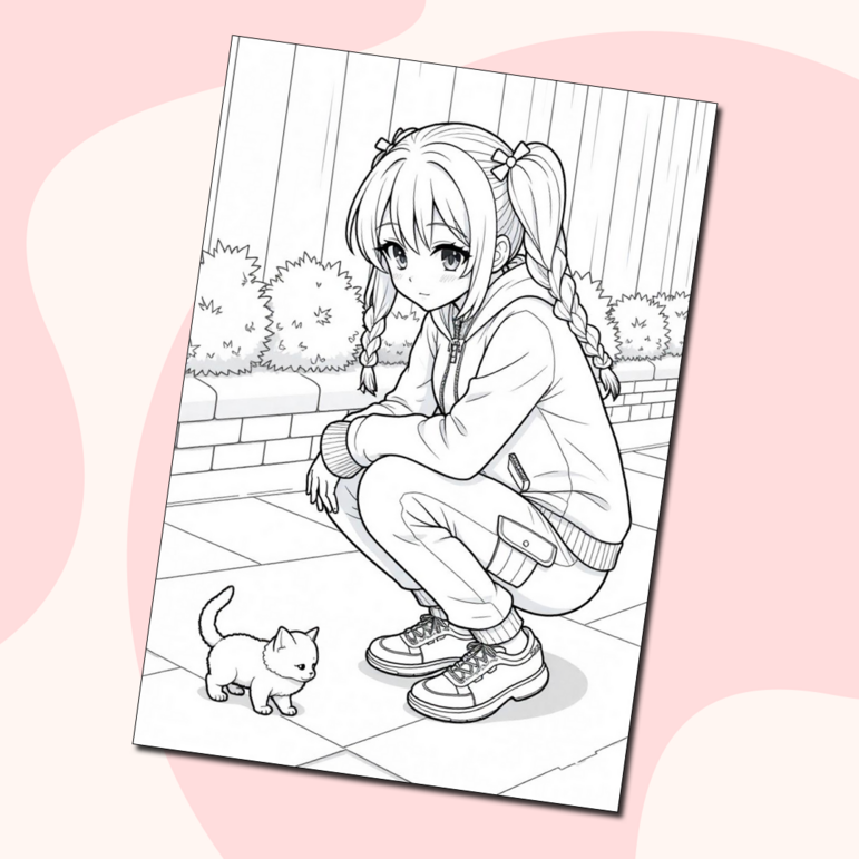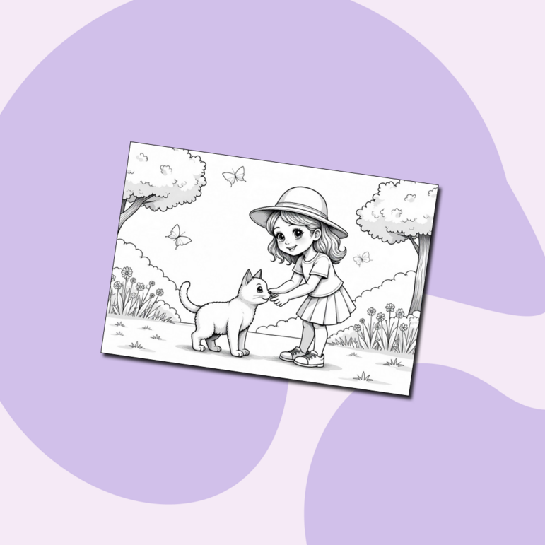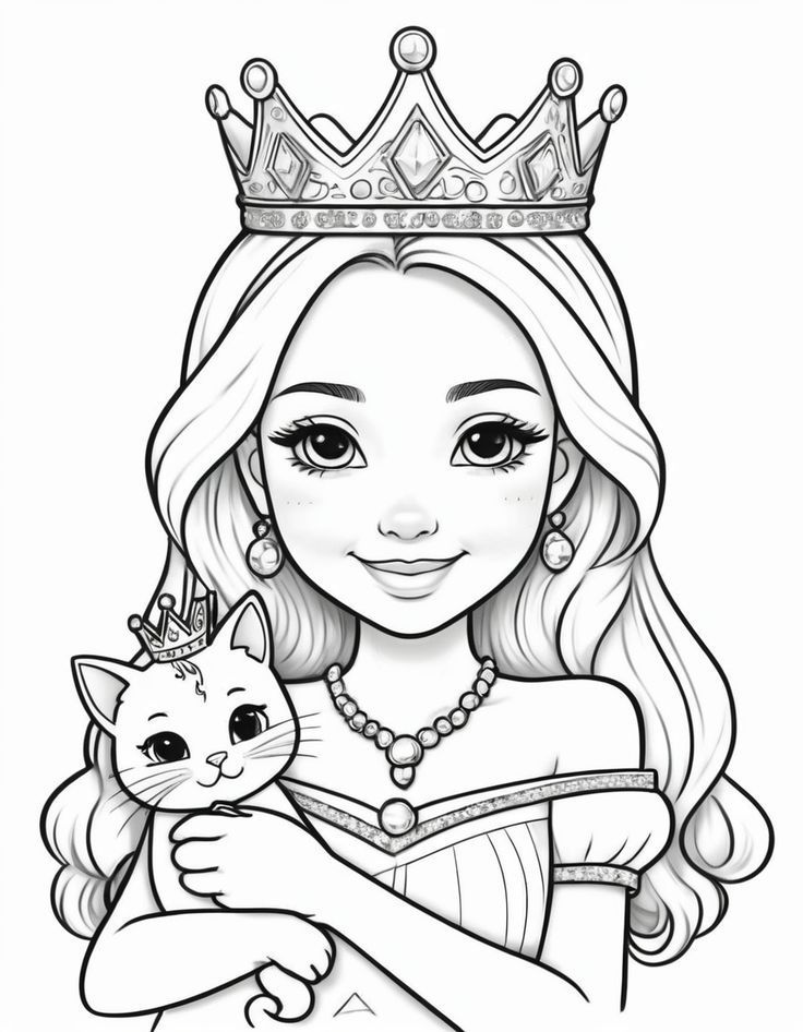 Раскраска девочка с котенком 128 фотографий
