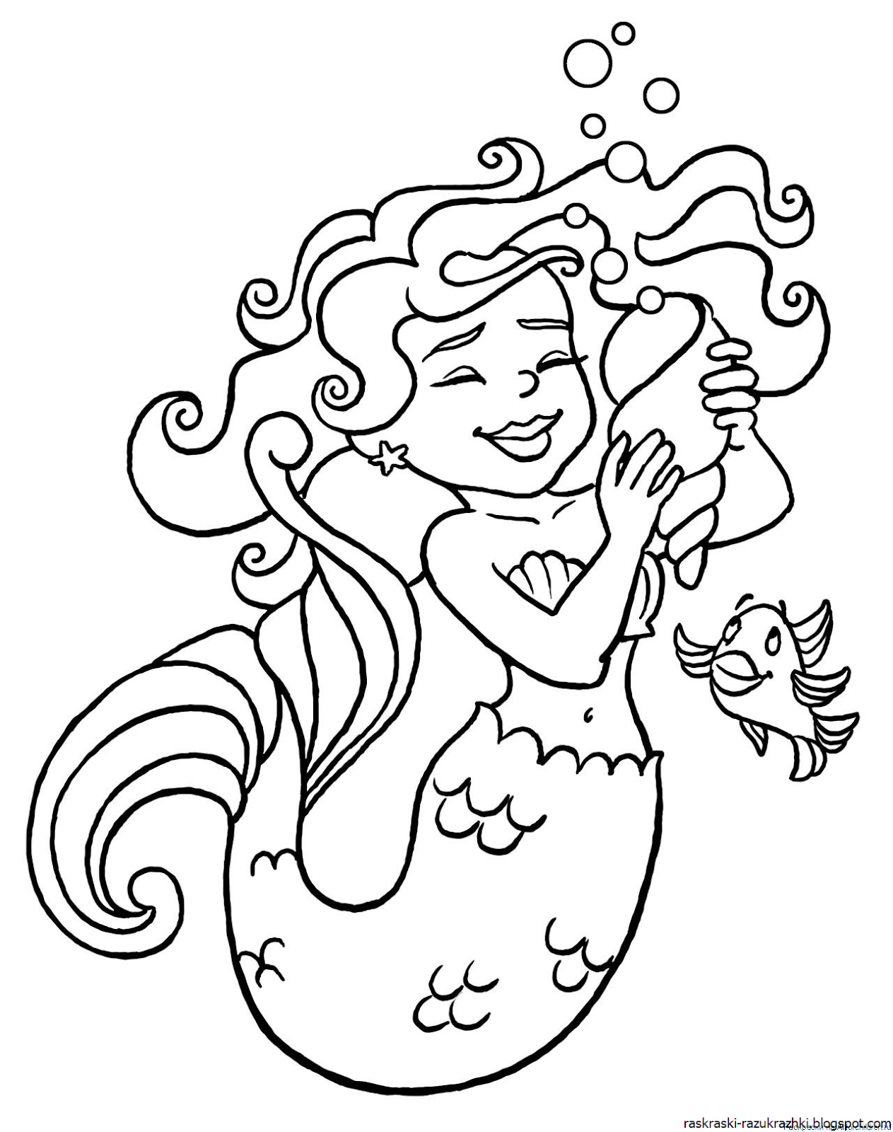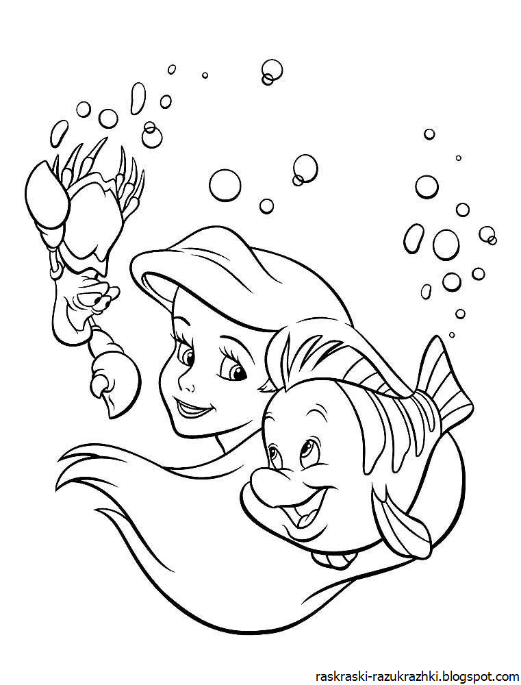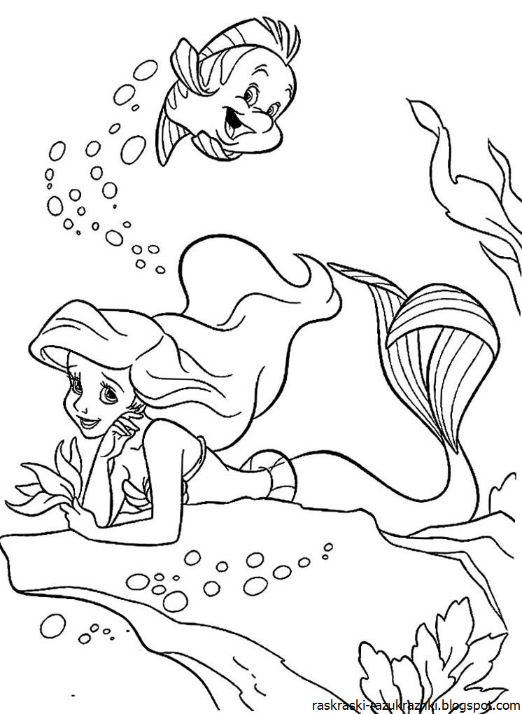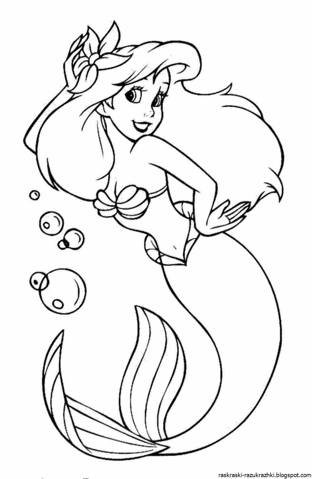 Русалочка Ариэль Раскраска Распечатать А4