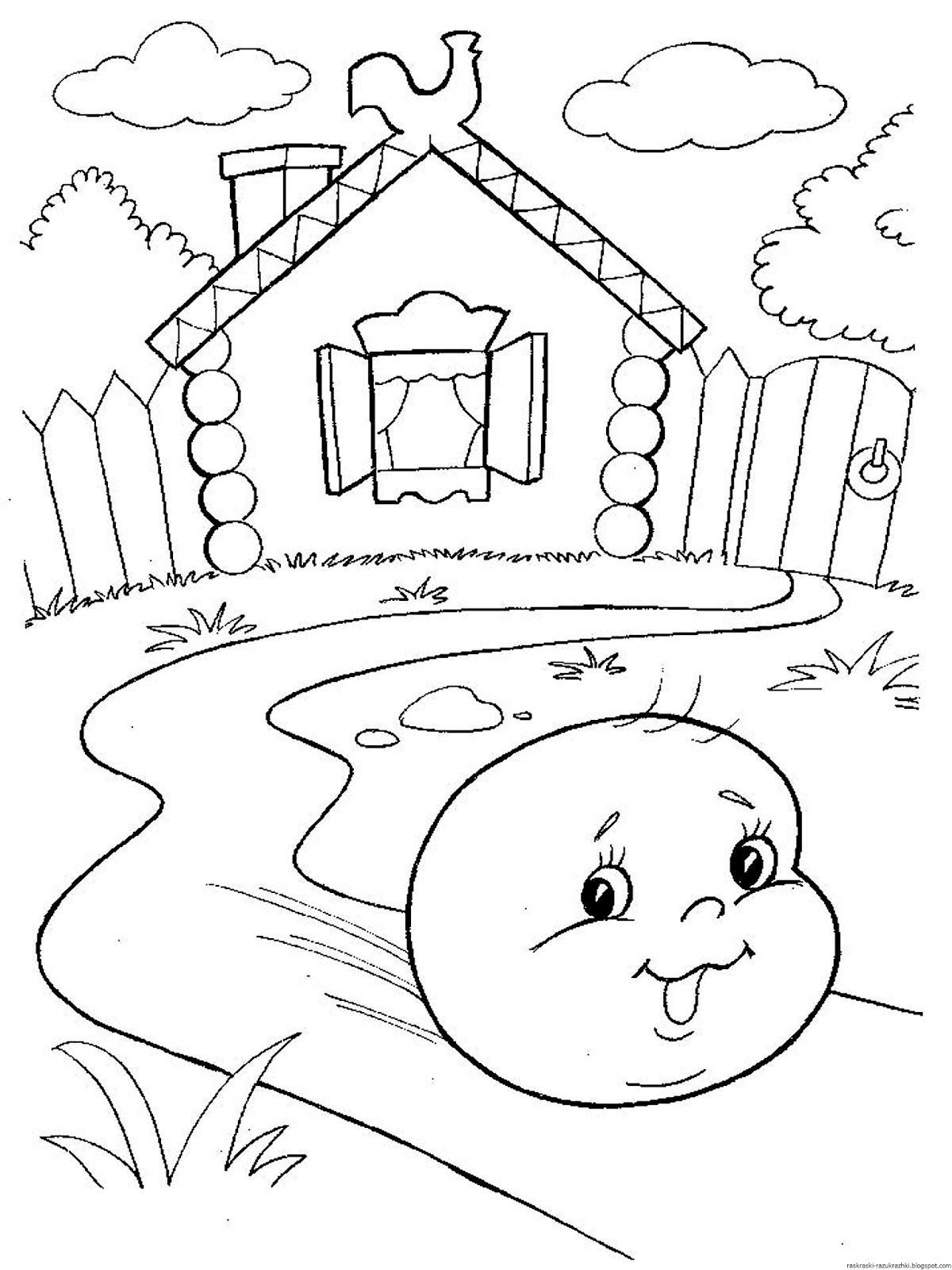 Колобок Катится По Дорожке Раскраска