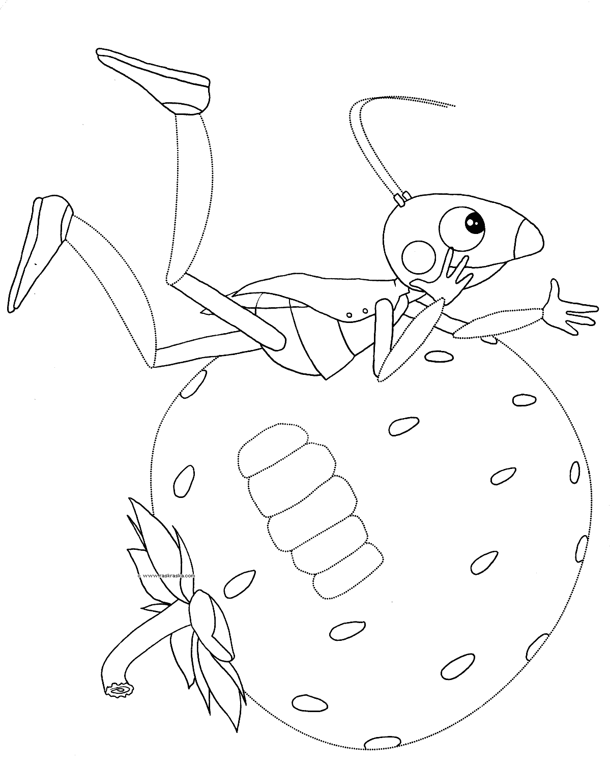 Раскраска Лунтик . Его друзья кузнечик Кузя, божья коровка Мила и Пчелёнок . Вы также можете найти их у нас в большой коллекции картинок, распечатать и раскрасить .