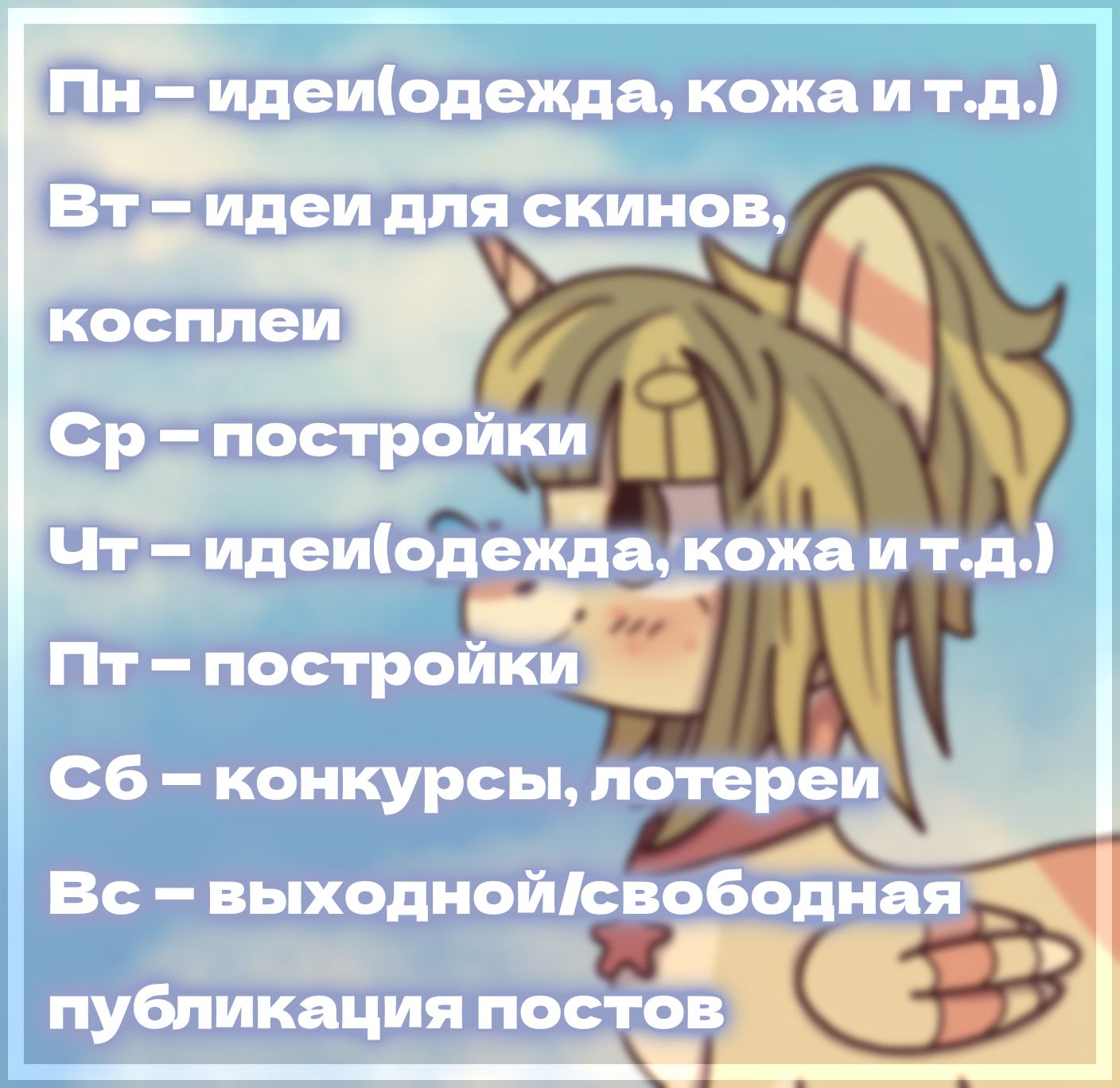 ❐ Воскресенье — свободная публикация постов.