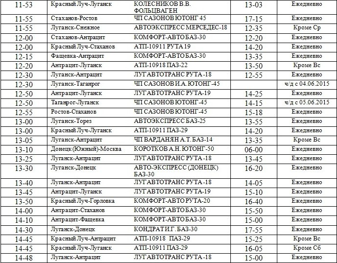 Расписание автобусов лнр 2025