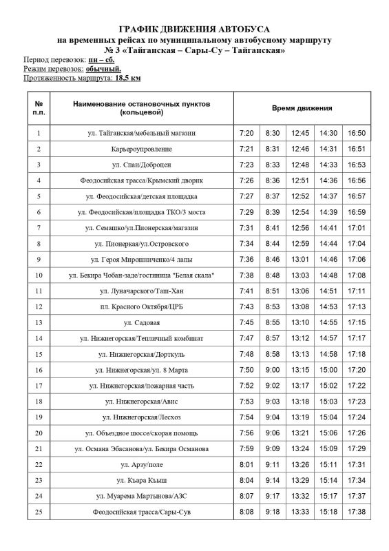 Расписание движение автобусов 62