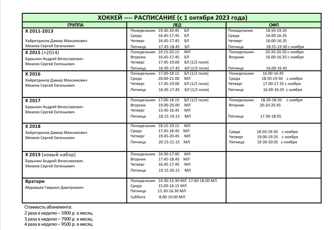 Расписание х к