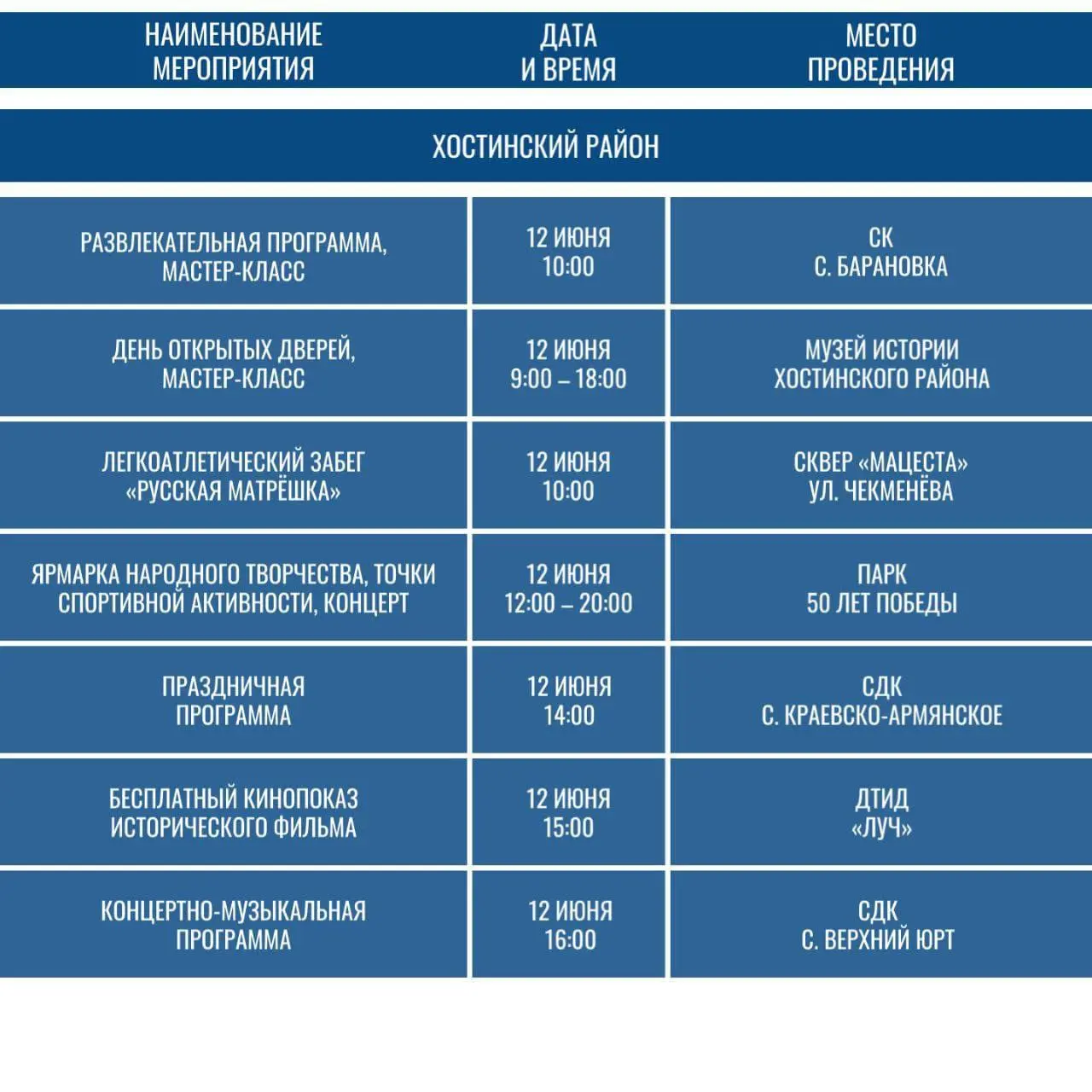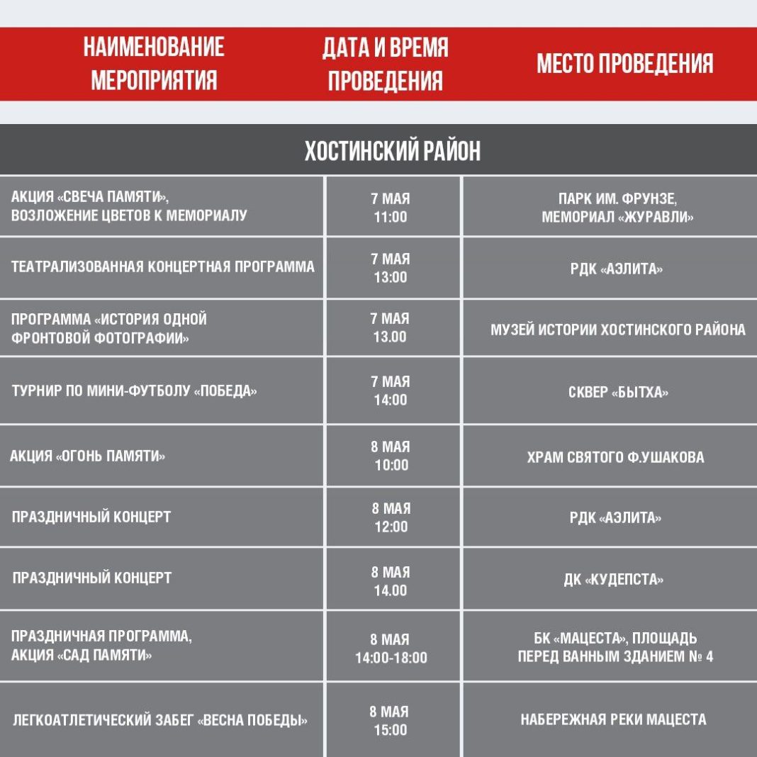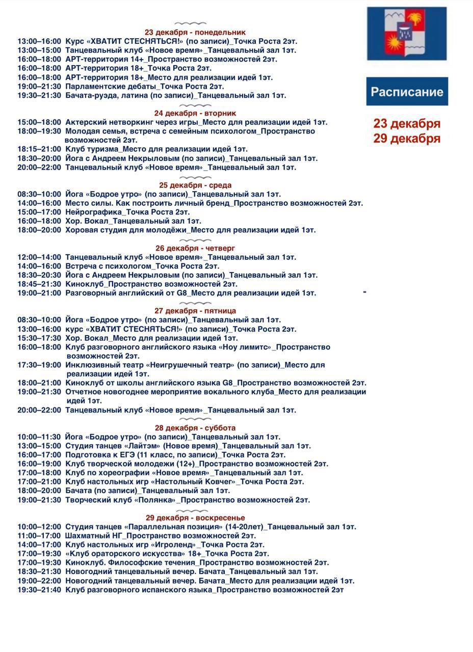 Расписание мероприятий в сочи