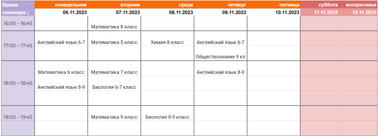 Расписание пришлите