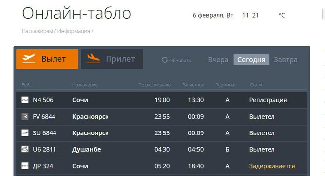 Расписание рейсов в анталью