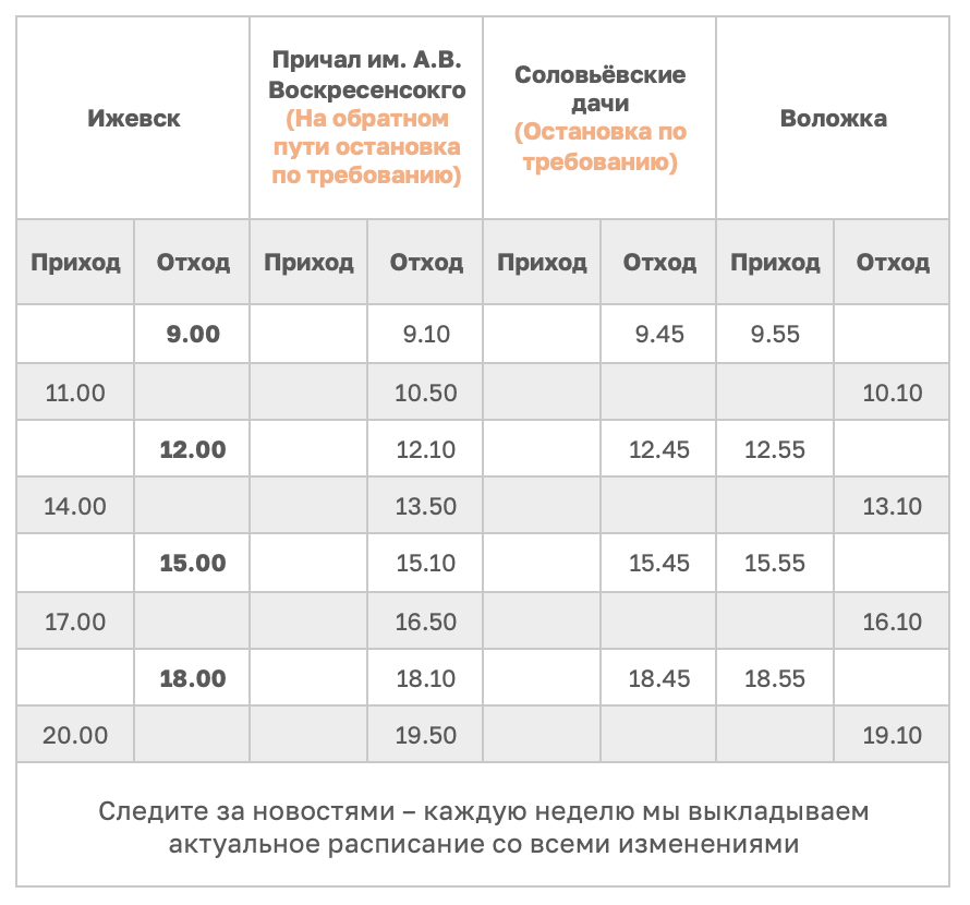 Расписание рейсового теплохода
