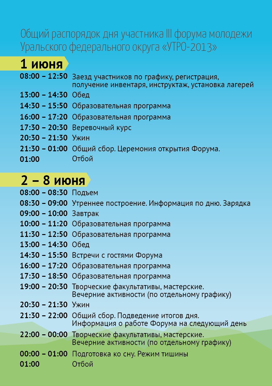 Расписание утра дня вечера
