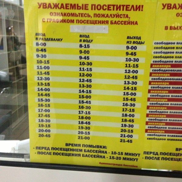 Расписания бассейна ариант