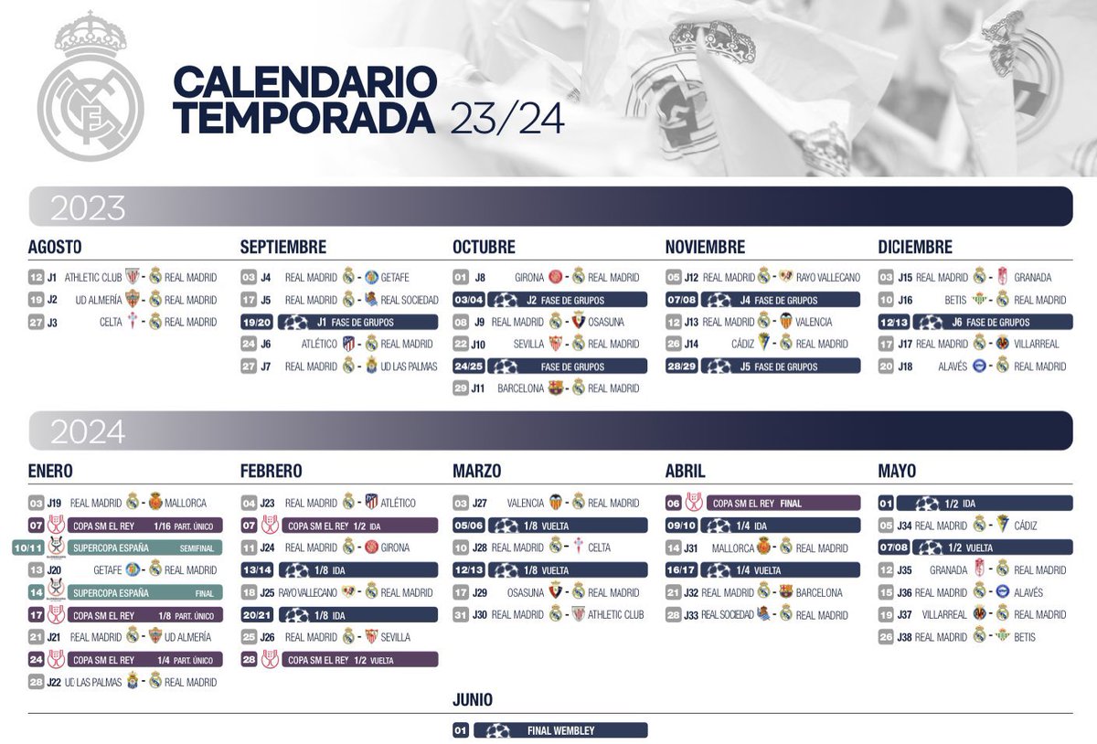 Расписания клуба реал