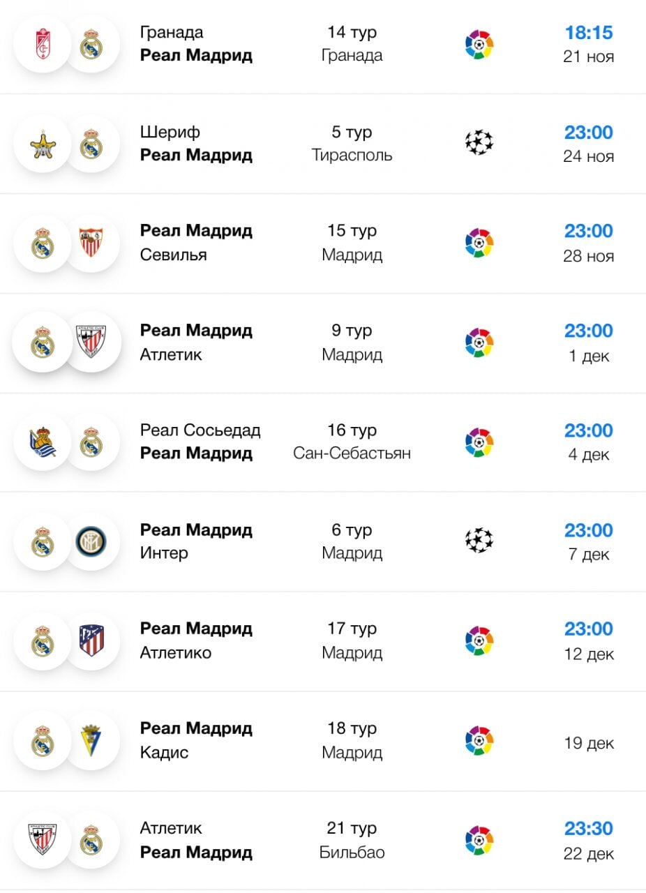 Расписания клуба реал 107 фотографий