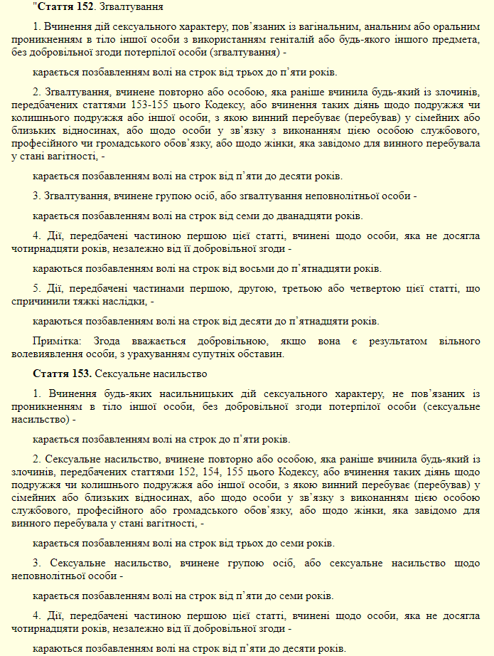От 5 до 10 лет за секс с женой: почему украинцам для интима понадобится расписка Сейчас в Украине изнасилованием признают деяние, которое сопровождалось физическим насилием, угрозами и беспомощным состояние жертвы .