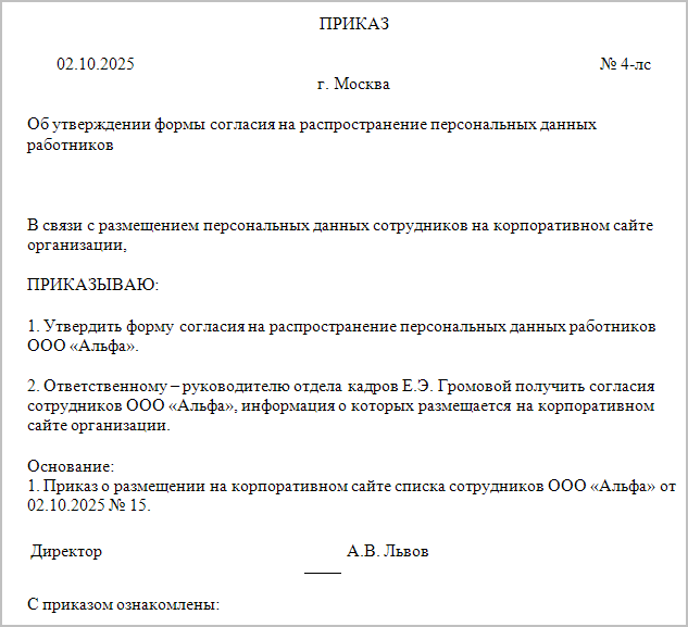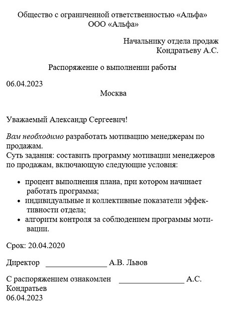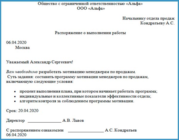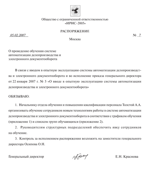 Распорядительный акт образец