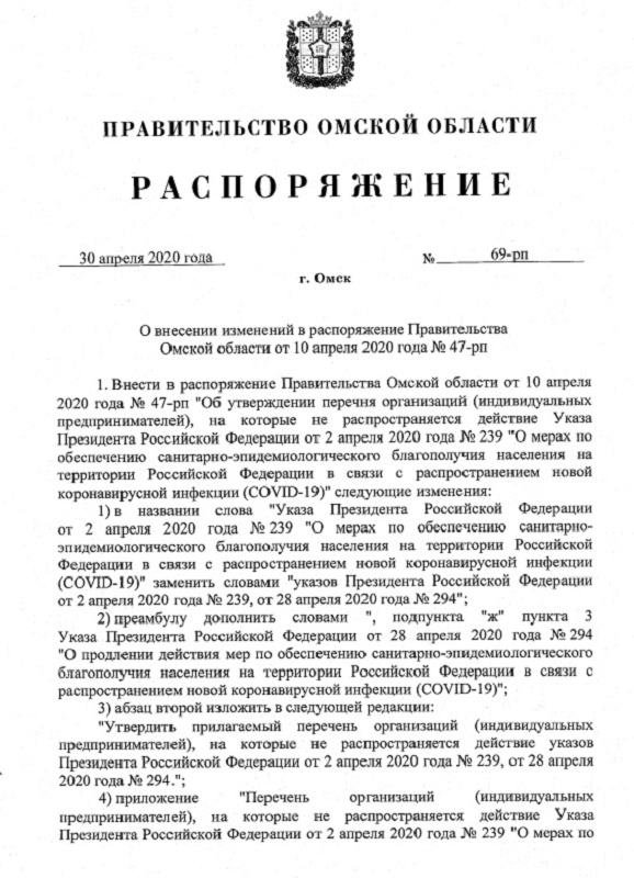 Распоряжение оперативного штаба
