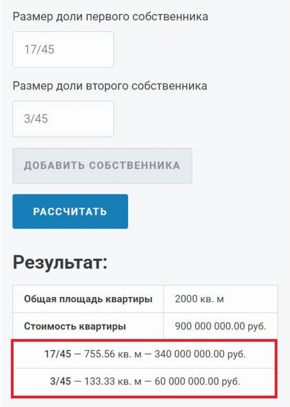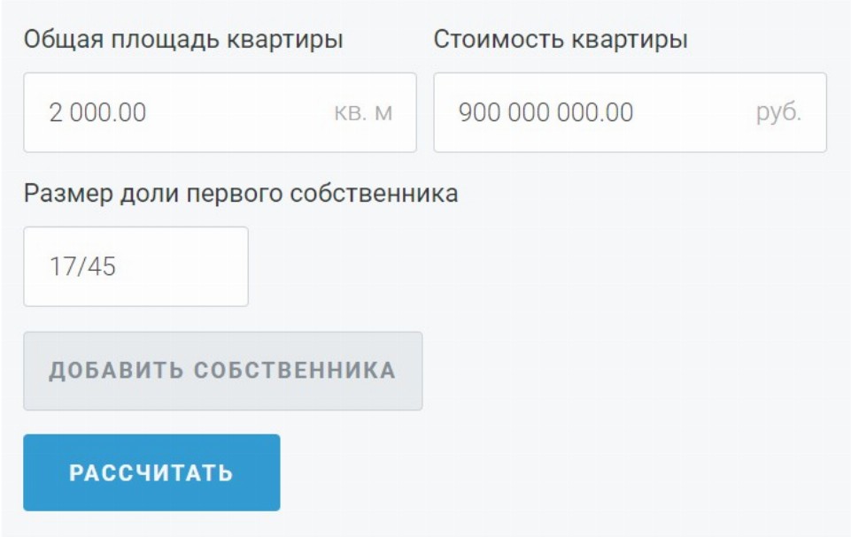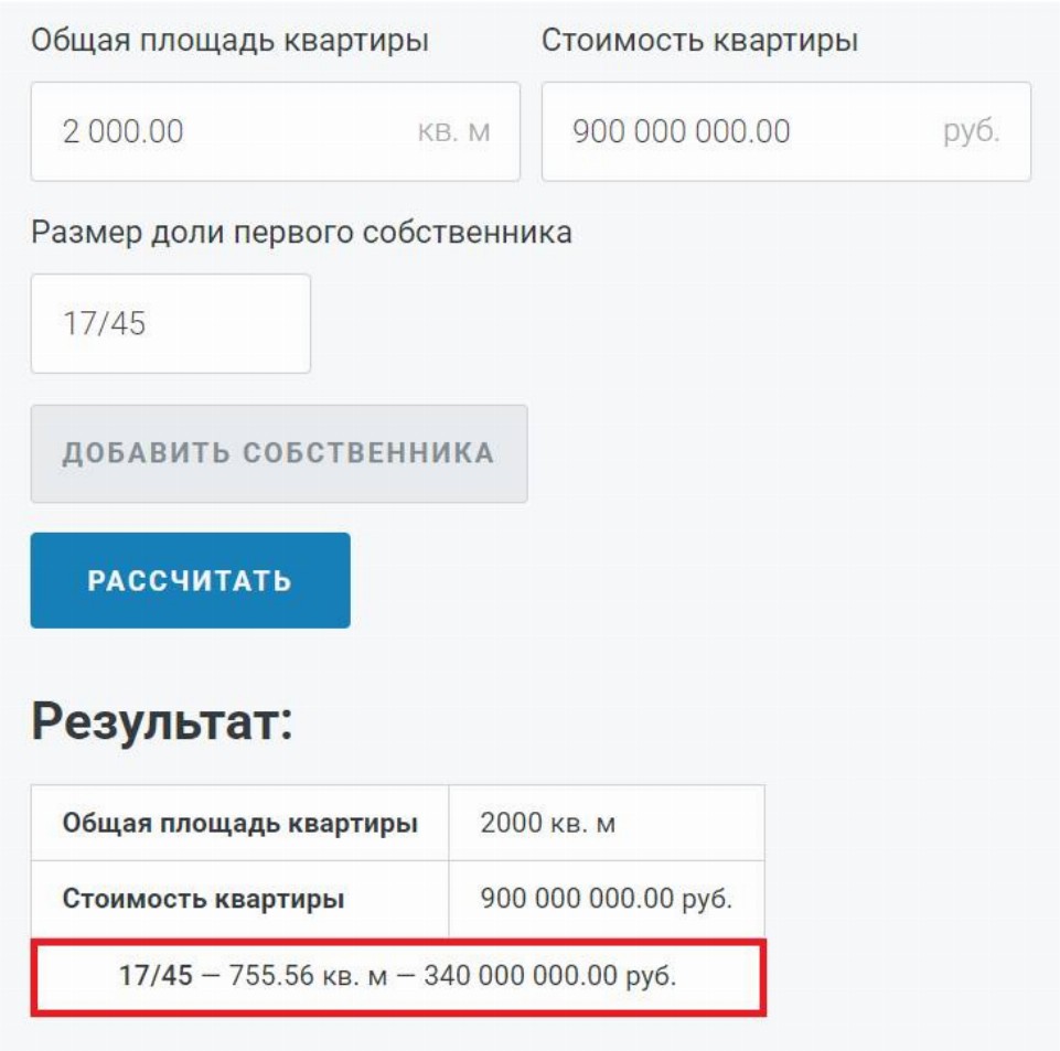 Рассчитать долю в квартире