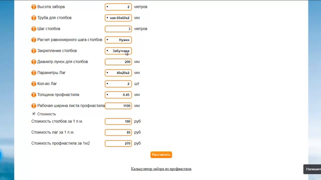 Рассчитать листы на забор