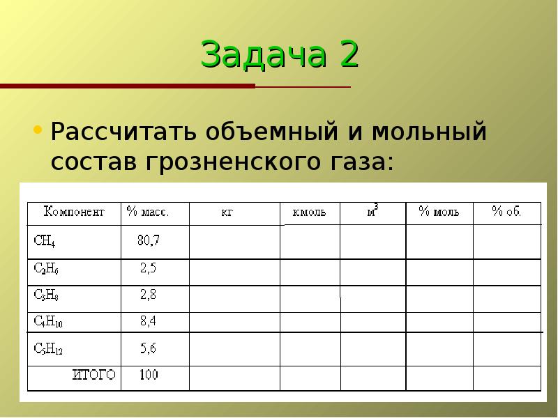 Рассчитать объемный состав