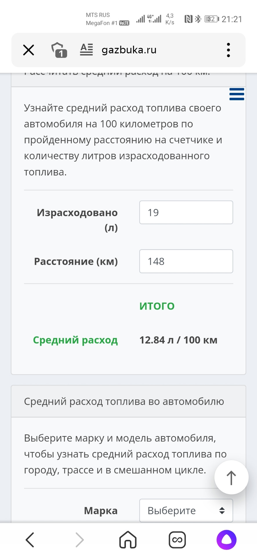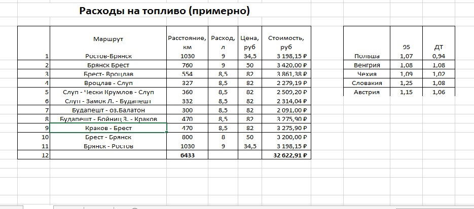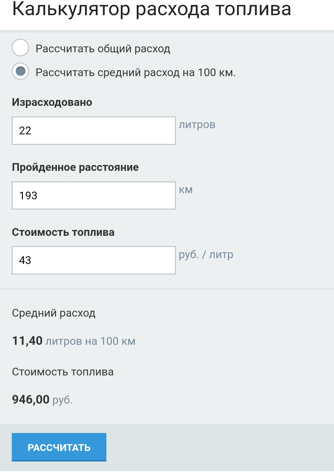 Рассчитать топливо по маршруту