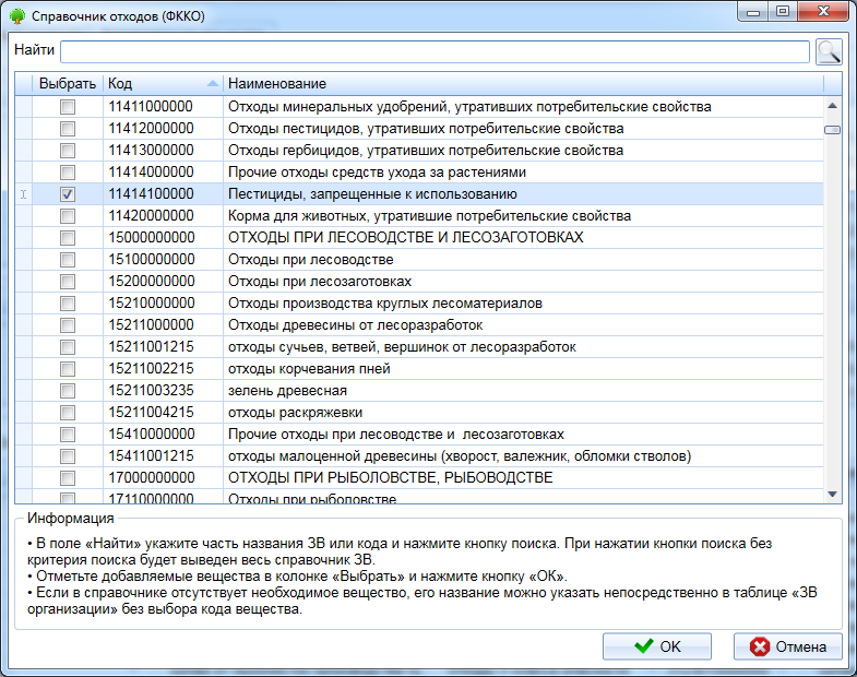 Расшифровка кода отхода