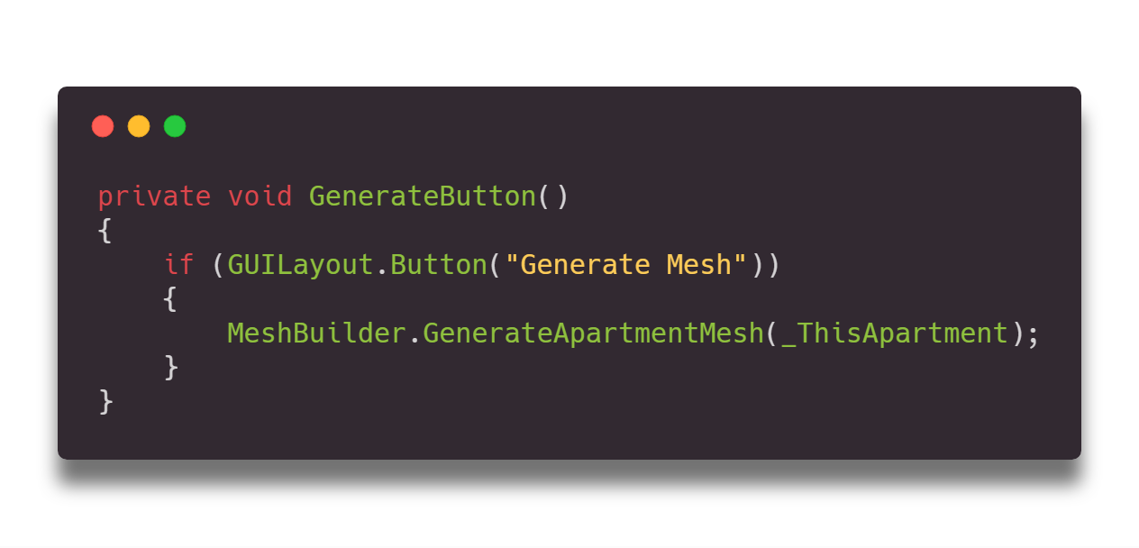 При нажатии на кнопку Generate Mesh вызывается статический метод, отвечающий за генерацию меша конкретной планировки.