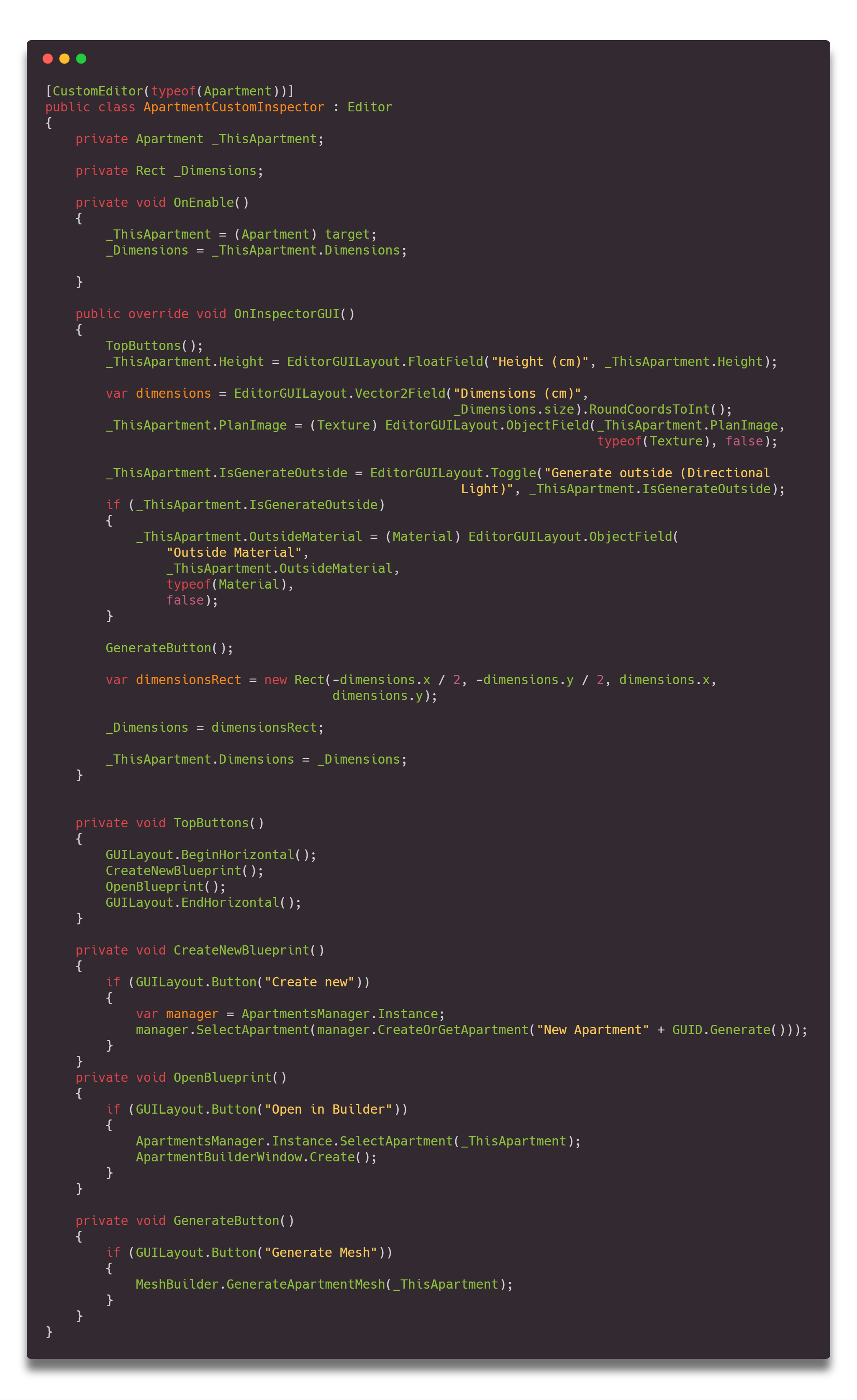 Теперь частично разберём класс ApartmentCustomInspector, и то как он работает.
