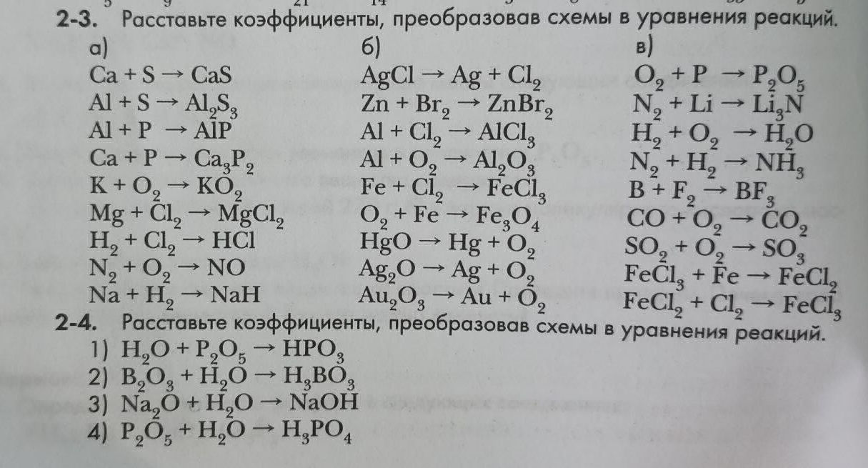 Расставьте коэффициенты в следующих уравнениям 105 фото